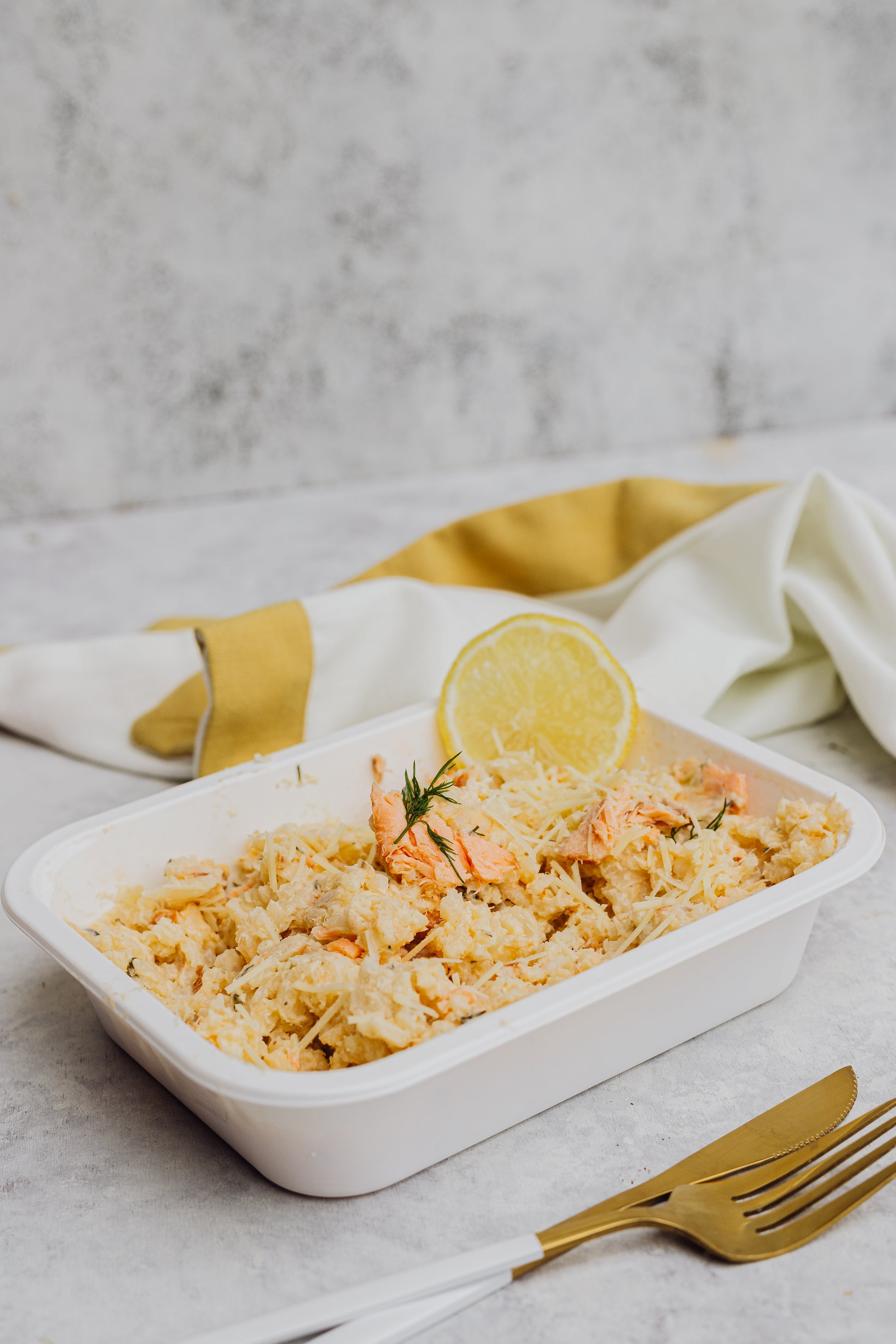 A perfect balance of creamy and zesty, our Hot Smoked Salmon Risotto is a crowd-pleaser that will elevate any meal. The rich, velvety risotto is infused with the delicate flavor of hot smoked salmon, complemented by the freshness of lemon zest, lemon juice, and a touch of lemon seasoning. With a smooth, creamy base made from unsalted butter, cream, and a splash of wine, every bite is bursting with flavor. A hint of garlic and mixed herbs rounds it all out, creating a dish that’s as comforting as it is refreshing. Whether served as a main for four or a side for eight, this dish is perfect for those who appreciate vibrant, wholesome meals.